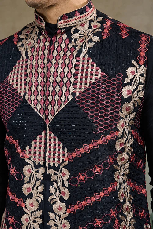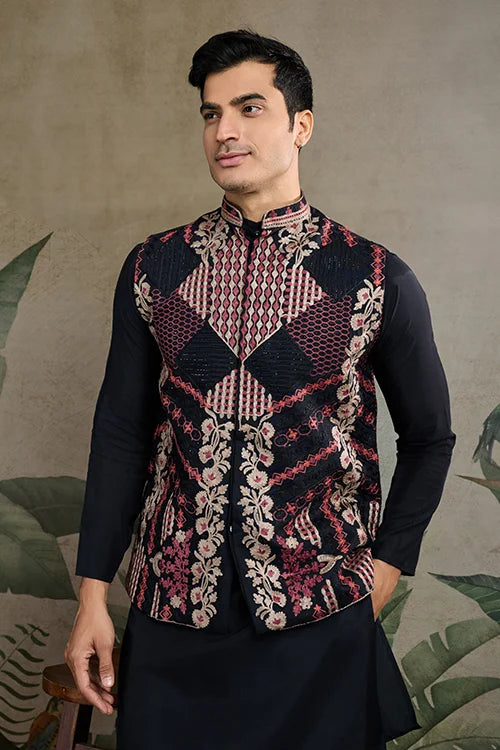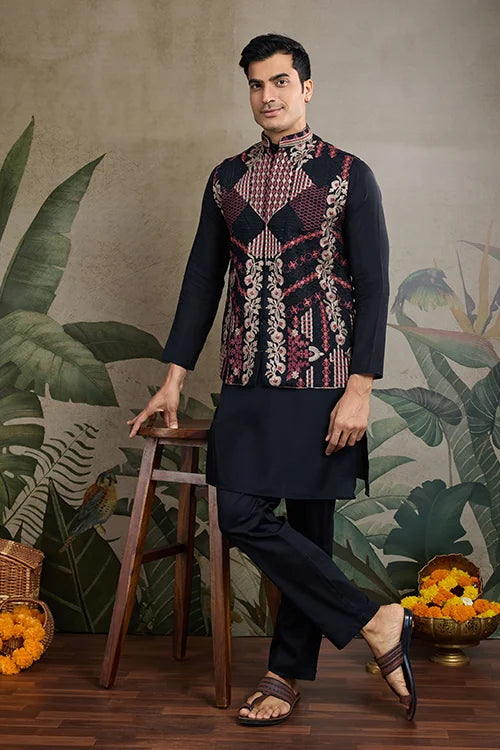 Upgrade Your Ethnic Wardrobe With the Black Viscose Silk Kurta Koti Set, a Perfect Black Viscose Silk Kurta Koti Set This Kurta and Koti Jacket Ensemble is Designed for Men Who Appreciate Elegance and Superior Craftsmanship.