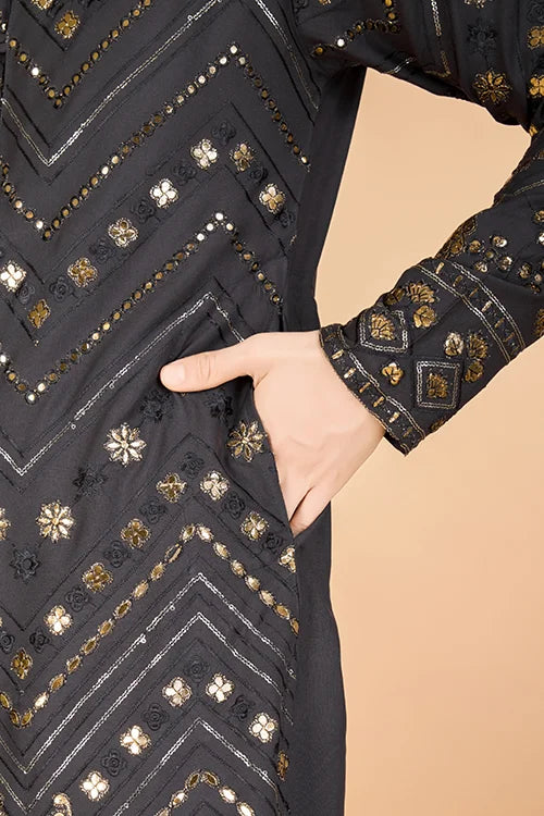 Our Designer Kurta Features Delicate Thread Embroidery and Sequence Detailing, Enhancing Its Overall Elegance. The Intricate Craftsmanship Showcases Skilled Artistry, Ensuring a Cement Grey Ethnic Wear . Whether You Wear It for Traditional Gatherings, Weddings, or Casual Events, This Kurta Ensures You Stand Out With Grace.