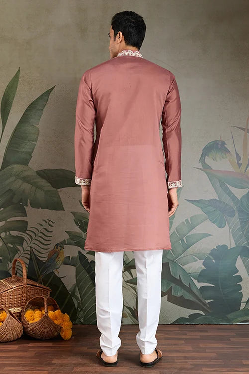 The Pastel Chocolate Kurta, is a Rich and Sophisticated Addition to Your Ethnic Wardrobe. Designed With a Contemporary Pastel Chocolate Hue, This Kurta Blends Modern Elegance With Traditional Styling. Crafted From High-quality Viscose Silk, It Offers a Smooth Texture and Subtle Sheen That Makes It Stand Out at Cultural Events, Weddings, Pooja's or Family Gatherings.