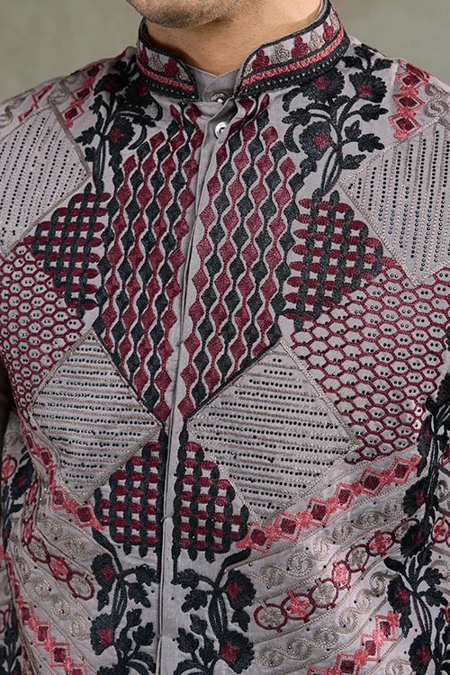 Looking for a Stylish and Sophisticated Ethnic Outfit? Our Stylish Grey Men's Kurta Koti Set is the Ultimate Combination of Tradition and Modern Fashion. Designed With Premium Viscose Silk Fabric, Appeal. Featuring Intricate Thread and Swarovski Embroidered Work, This Ensemble is Perfect for Weddings, Festive Occasions, and Special Celebrations.