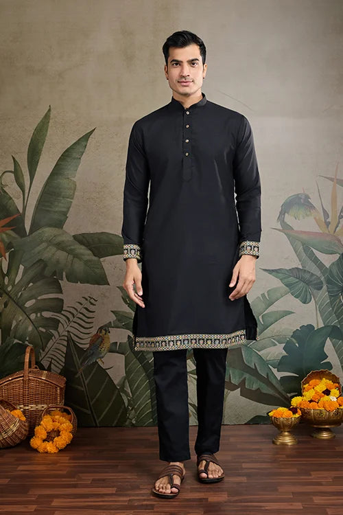 Made From Premium Cotton Fabric, This Kurta Ensures All-day Comfort While Maintaining a Sophisticated Look. The Cotton Koti Jacket is Adorned With Exquisite Thread and Sequin Embroidery, Adding a Touch of Festive Charm. Whether It's a Wedding, Festival, or Any Grand Celebration, Black Kurta with Jacket.