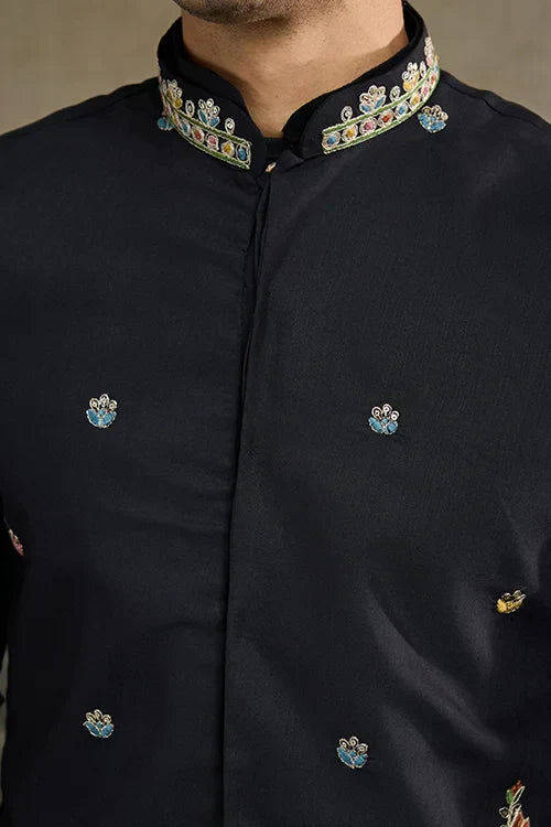 Crafted With Precision, This Black Ethnic Jacket Kurta That Complements All Body Types. The Breathable Cotton Fabric Ensures Ease of Movement, Making It Ideal for Long Wear. The Accompanying Embroidered Koti Jacket Takes the Look to the Next Level With Its Intricate Detailing. The Black Ethnic Jacket Kurta , Making It a Timeless Choice for Ethnic Wear.