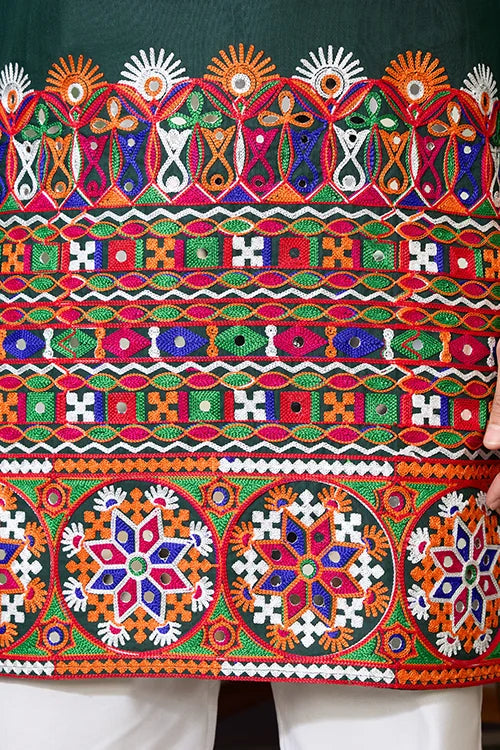 ๐ Navratri Style Green Cotton Readymade Kurta for Men by Mahi Fab ๐
