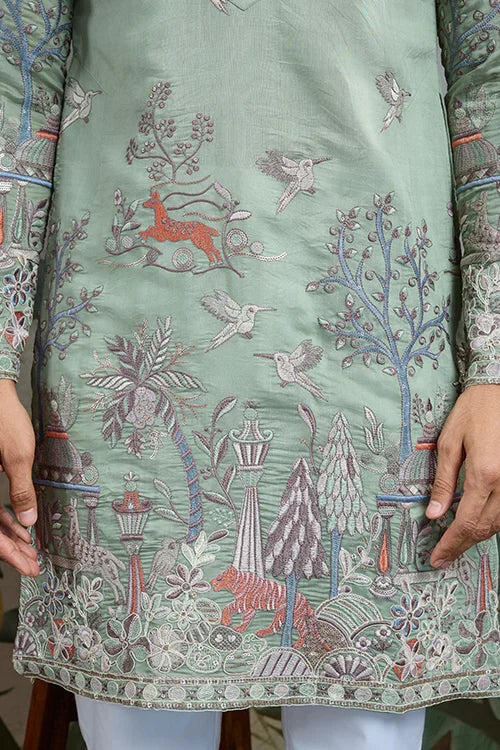 🎨 Kurta Work: Intricate Thread & Sequence Embroidery