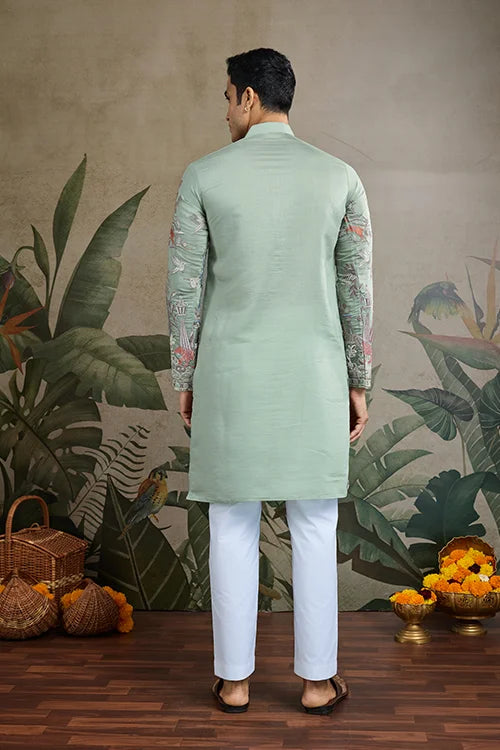 🌟 The refreshing Pista Green tone adds versatility to your ethnic wardrobe, while the delicate embroidery elevates its sophistication—guaranteeing you radiate confidence and grace at every event.