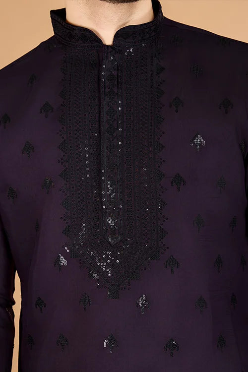 Whether You Are Attending a Wedding, a Family Gathering, or a Religious Event, This Designer Purple Kurta Set. The Matching Dupatta Completes the Ensemble, Adding to the Grandeur. With a Modern Yet Traditional Appeal, This Kurta Set is a Must-have for Men Who Want to Make a Style Statement.