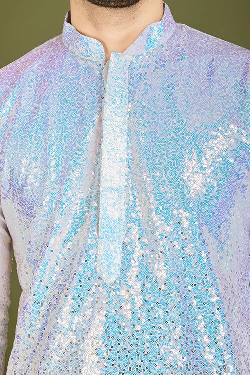 The Ombre Yellow Designer Men's Kurta in Real Georgette is a Must-have for Any Fashion-forward Man. The Vibrant Ombre Yellow Shade Adds a Modern Touch, Blending Tradition With Contemporary Style. The Exquisite Thread and Sequence Work Enhances the Kurta’s Elegance, Ensuring That You Stand Out at Weddings, Festivals, and Cultural Events.
