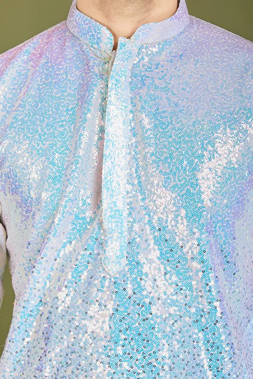 The Stylish Ombre Blue Kurta is a Perfect Blend of Elegance and Tradition, Designed for Men Who Love to Make a Statement at Festive and Wedding Events. Crafted From Real Georgette, This Kurta Offers a Luxurious Drape and Lightweight Comfort, Making It an Ideal Choice for Celebrations. With Intricate Thread and Sequence Work, It Adds a Touch of Sophistication and Grandeur to Your Ethnic Wardrobe.