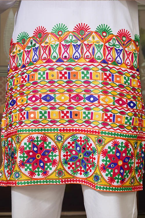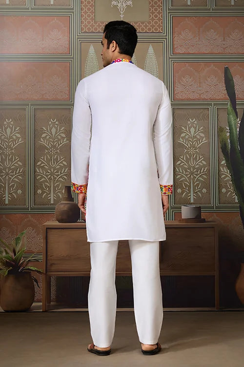 🤍 Stylish White Cotton Readymade Men’s Navratri Kurta by Mahi Fab 🤍