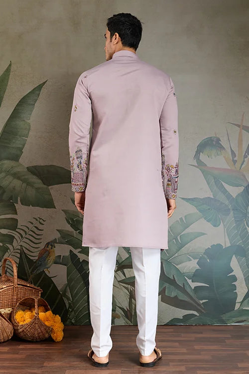 Upgrade Your Traditional Wardrobe With This Elegant Dusty Pink Embroidered Kurta Set Featuring a Matching Dupatta and Optional Pajama. Designed for Festive Occasions and Wedding Ceremonies, This Ensemble Combines Timeless Craftsmanship With Premium Comfort.