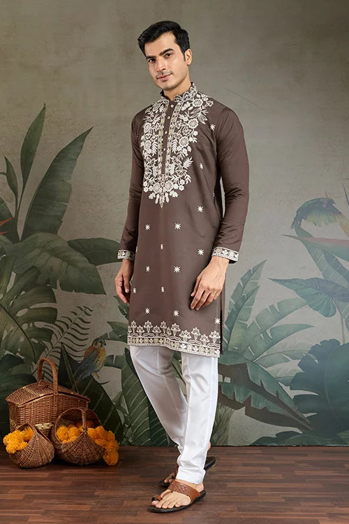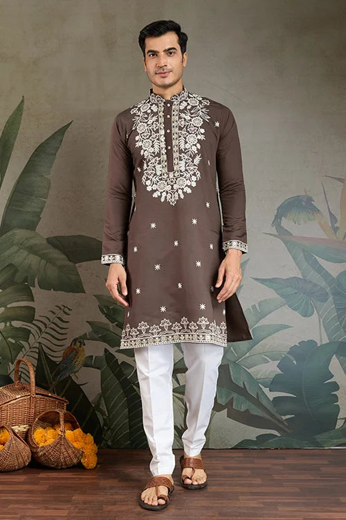 Wedding Functions Chocolate Gray Embroidered Kurta