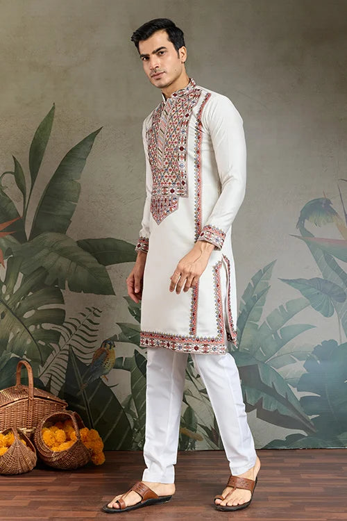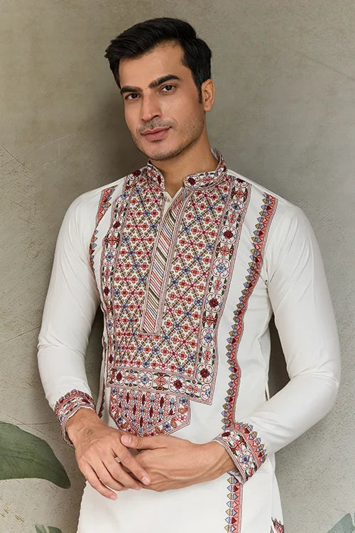 Grace Meets Royalty in This White Embroidered Kurta for Men 👑✨