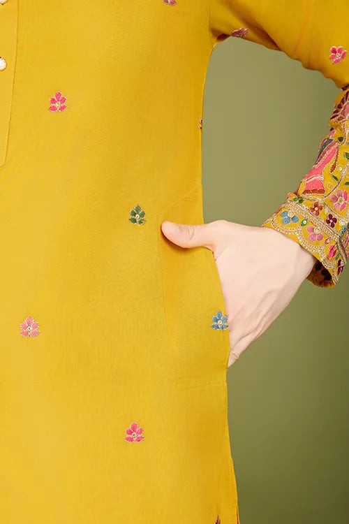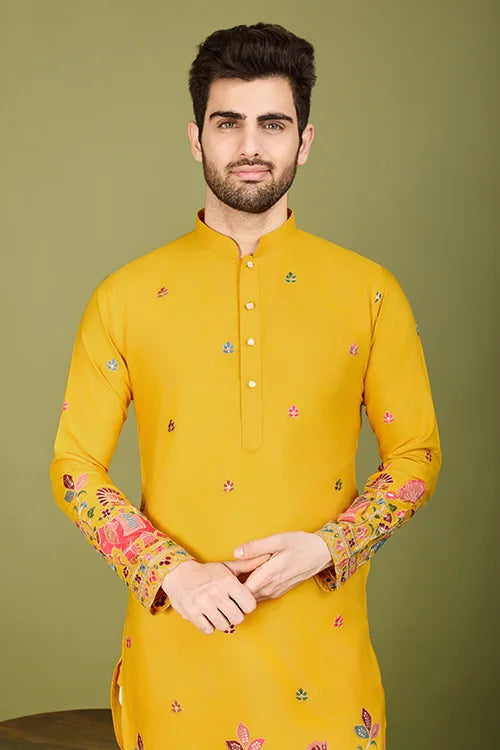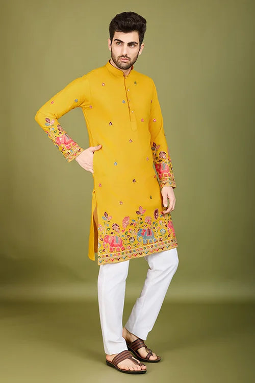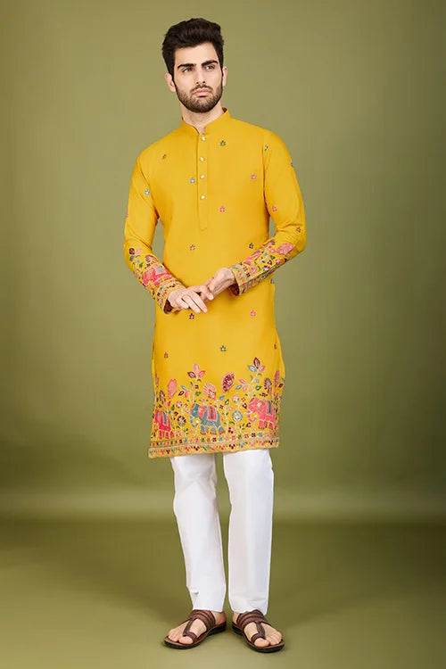 At Shubhkalastore, We Understand the Significance of Haldi Ceremonies in Indian Culture. It’s Not Just an Event; It’s a Moment of Joy, Laughter, and Love Shared With Family and Friends. Keeping That in Mind, This Kurta is Designed to Offer the Perfect Blend of Traditional Aesthetics and Modern Sophistication. Whether You're the Groom or a Guest, This Kurta Ensures You Make a Statement on Your Special Day.