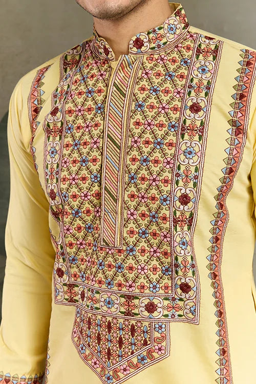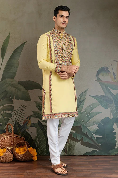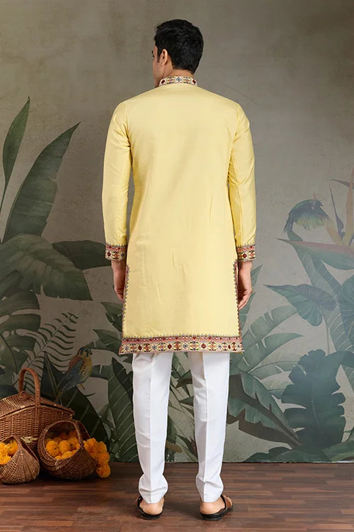 Celebrate Traditions in Style With This Yellow Embroidered Kurta for Men ๐